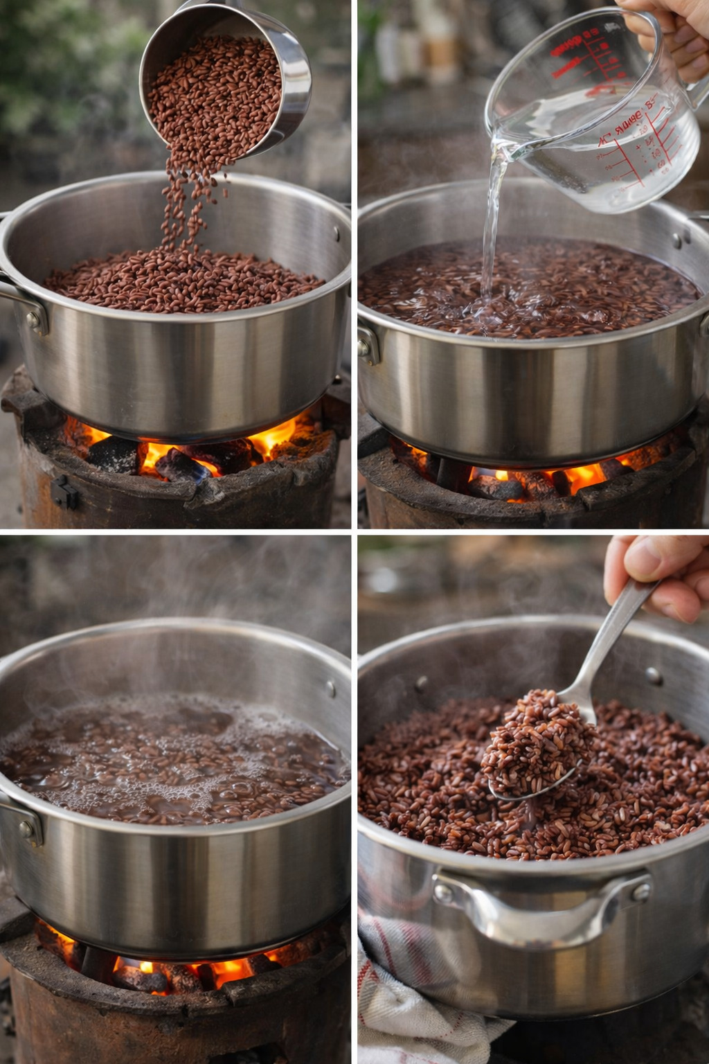 Wash the brown rice thoroughly 2–3 times to remove dust and excess starch.