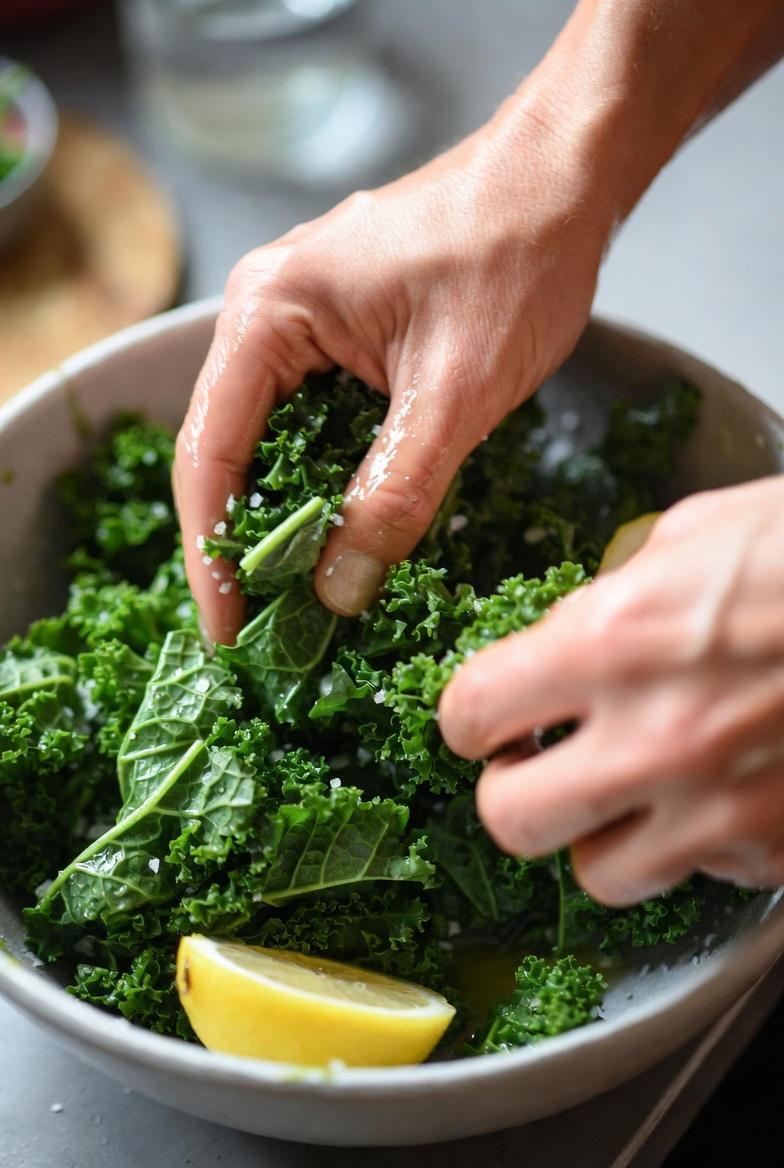 Massage it (The quickest raw method) Strip leaves from thick stems → tear into small pieces → add a pinch of salt + 1 tsp lemon juice or apple cider vinegar → mas